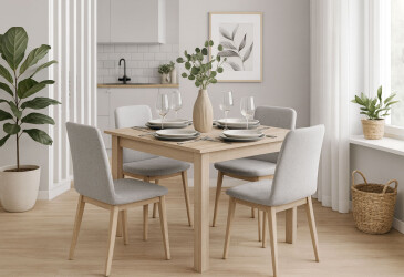 На думку ергономістів, щоб відчувати себе комфортно, людині необхідно мати власну зону шириною не менше 70 см. Тому стіл розміром 120х75 (80) см здатний задовольнити мінімальні запити сім'ї складається з 4-х чоловік.