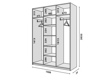 - Киевский стандарт, ламинированная ДСП, ламинированная ДСП, телескопические направляющие полного выдвижения, штанга, полки и ящики, современный, 2D.