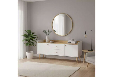 - деревянные, новинка, Art In Head, ламинированная ДСП, ламинированная ДСП, телескопические направляющие полного выдвижения, сканди, белый бриллиант / дуб крафт золотой, с 2 ящиками, с дверками.