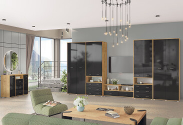 - Perfect Home, ламинированная ДСП, ламинированная ДСП, МДФ, система открытия Push to open, современный, дуб кремона / черный, с 3 ящиками, с дверками.