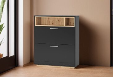 - супер-цена, Moreli, ламинированная ДСП, ламинированная ДСП, петли с доводчиками, современный, дуб аппалачи / антрацит, с открытыми полками.