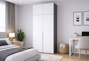 - VIP-master, крашеная МДФ, ДСП, петли с доводчиками, штанга и полки, минимализм, антрацит / белый, 2D.