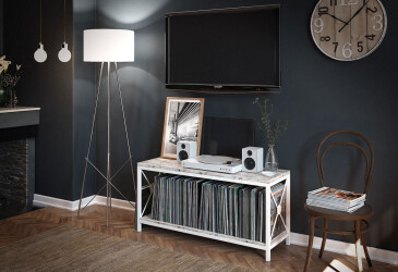 - Kredens furniture, ламинированная ДСП, ламинированная ДСП, телескопические направляющие полного выдвижения, напольный, минимализм, дуб сонома / белый.