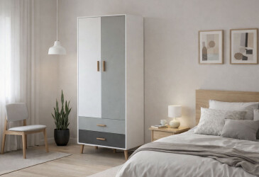 - Moreli, ламинированная ДСП, ламинированная ДСП, штанга и ящики, современный, белый, 2D.