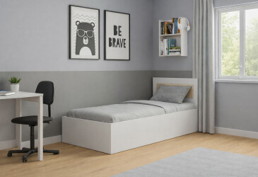 - 46 см, в наличии, 90х200, без вклада, без матраса, VMV holding, ламинированная ДСП, ламинированная ДСП, модерн, белый / кантри лейбел, выдвижной ящик, выдвижной ящик.