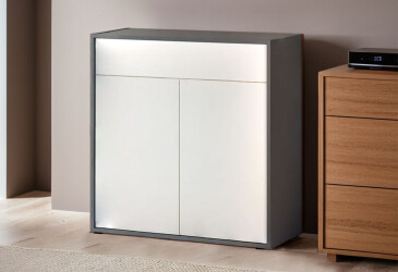 - в наличии, VMV holding, ламинированная ДСП, ламинированная ДСП, телескопические направляющие полного выдвижения, модерн, графит / белый, с дверками.