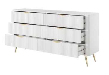 - MiroMark, глянцевая ДСП, ламинированная ДСП, телескопические направляющие полного выдвижения, минимализм, белый, с 6 ящиками.