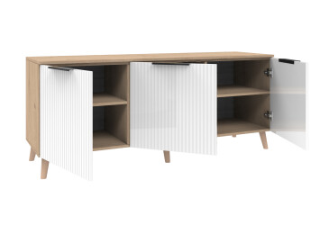 - Perfect Home, ламинированная ДСП, ламинированная ДСП, роликовые направляющие, модерн, белый / дуб крафт золотой, с дверками.