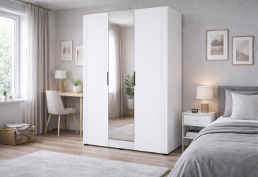 - Киевский стандарт, МДФ, ламинированная ДСП, система открывания Tip-On, штанга и полки, минимализм, нимфея альба / белый глянец, 4D.