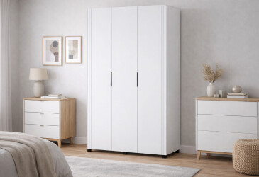 - Киевский стандарт, МДФ, ламинированная ДСП, система открывания Tip-On, штанга, минимализм, нимфея альба / белый мат, 4D.