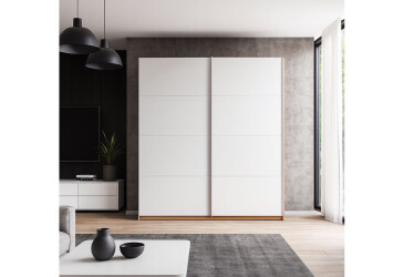 - MiroMark, глянцевая ДСП, ламинированная ДСП, штанга, минимализм, дуб крафт / белый, 2D.