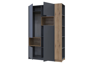 - в наличии, Doros, ламинированная ДСП, ламинированная ДСП, штанга, полки и ящики, минимализм, графит / дуб эвок, 4D.