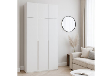 - VIP-master, крашеная МДФ, ДСП, петли с доводчиками, штанга и полки, минимализм, белый, 3D.