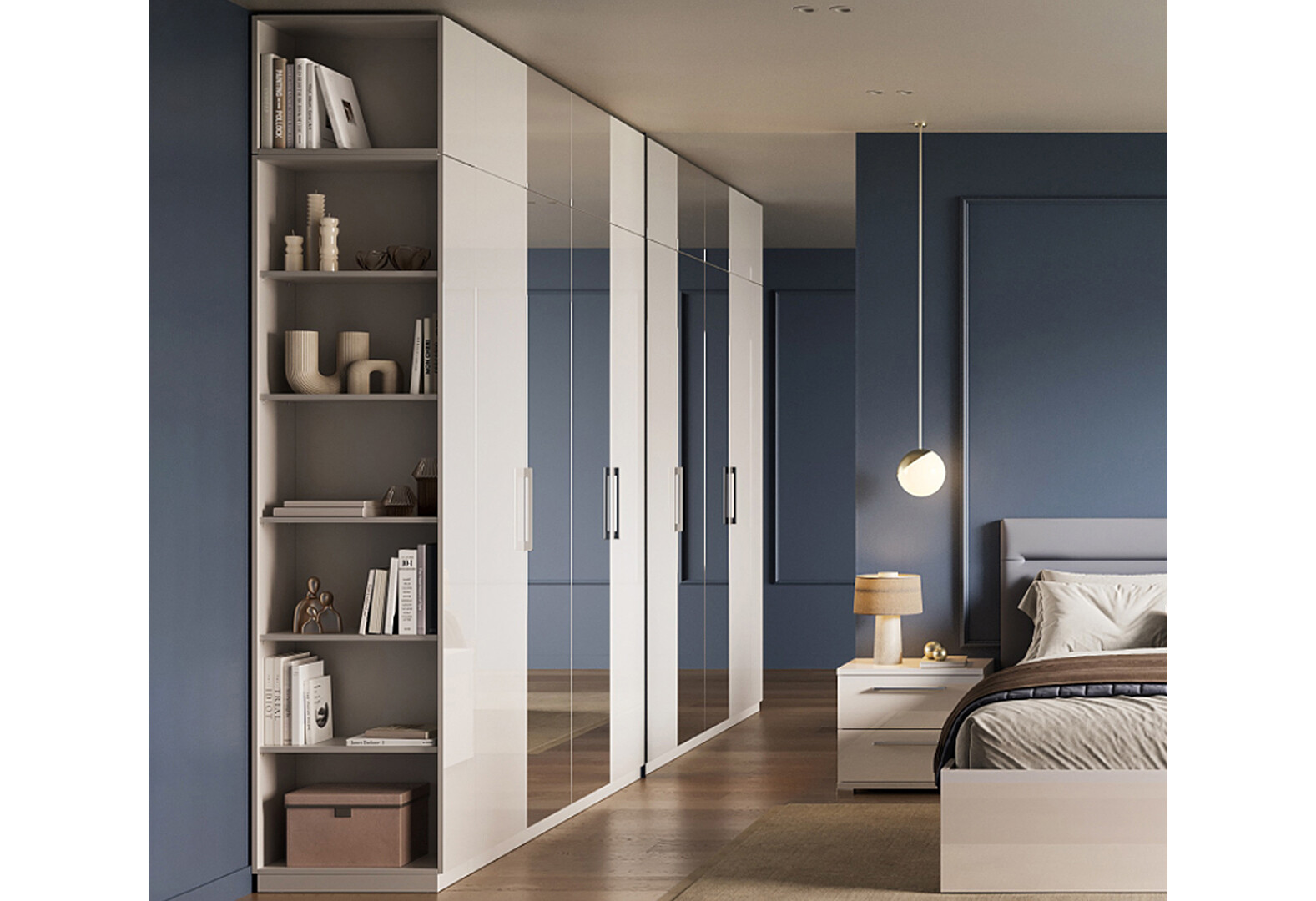 Антресоль MiroMark Фемили/Family 4 дв с зеркалами, белый глянец