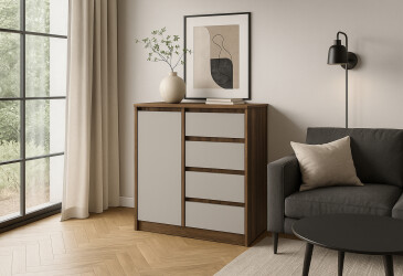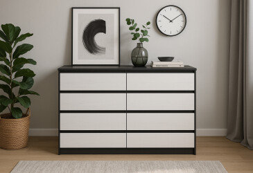 - Киевский стандарт, ламинированная ДСП, ламинированная ДСП, телескопические направляющие полного выдвижения, модерн, дуб сонома / белый структурный new, с 4 ящиками.