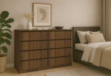 - Киевский стандарт, ламинированная ДСП, ламинированная ДСП, телескопические направляющие полного выдвижения, модерн, с 8 ящиками.