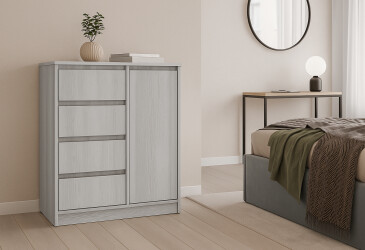 - Киевский стандарт, ламинированная ДСП, ламинированная ДСП, телескопические направляющие полного выдвижения, модерн, сосна натти, с 4 ящиками, с дверками.
