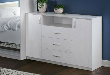 - Киевский стандарт, ДСП, ДСП, роликовые направляющие, современный, белый структурный new, с 3 ящиками, с дверками.