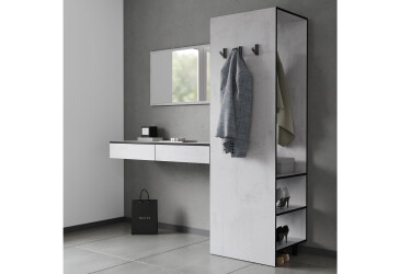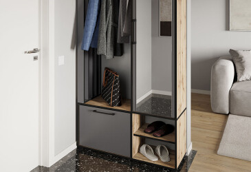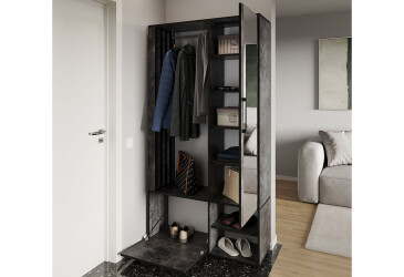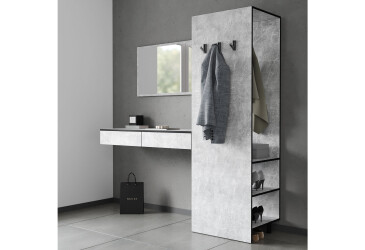 - пластиковые, не входит в комплект, Moreli, ламинированная ДСП, ламинированная ДСП, штанга и полки, лофт, бетон, со шкафом с распашными дверями.