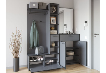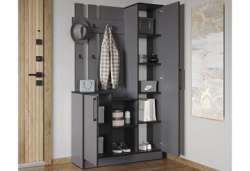 - пластиковые, не входит в комплект, Moreli, ламинированная ДСП, ламинированная ДСП, штанга и полки, лофт, антрацит, со шкафом с распашными дверями.