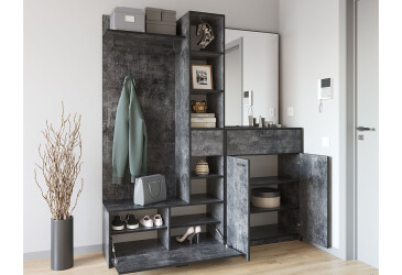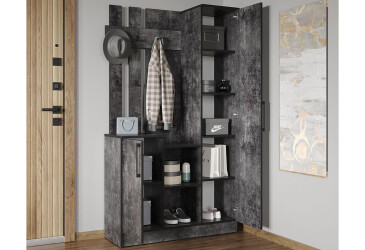 - пластиковые, Moreli, ламинированная ДСП, ламинированная ДСП, петли с доводчиками, полки, лофт, бетон темный, со шкафом с распашными дверями.
