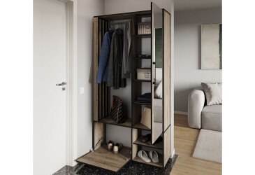 - пластиковые, не входит в комплект, Moreli, ламинированная ДСП, ламинированная ДСП, штанга и полки, лофт, дуб аппалачи / антрацит, со шкафом с распашными дверями.