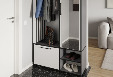 - пластиковые, не входит в комплект, Moreli, ламинированная ДСП, ламинированная ДСП, штанга и полки, лофт, антрацит / белый, со шкафом с распашными дверями.