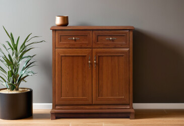 - Gerbor холдинг, ДСП с накладками МДФ, ламинированная ДСП, роликовые направляющие, классические, каштан, с 2 ящиками, с дверками.