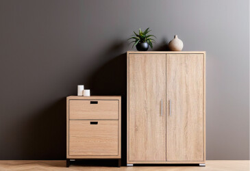 - Gerbor холдинг, ДСП, ДСП, телескопические направляющие полного выдвижения, сканди, сосна каньон / дуб сонома трюфель, с 4 ящиками, с дверками.