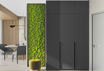 • MiroMark, глянцевая ДСП, ламинированная ДСП, телескопические направляющие полного выдвижения, штанга, полки и ящики, минимализм, антрацит, 6D.