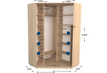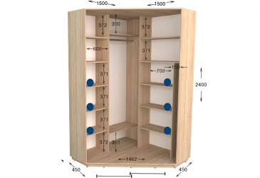- VIP-master, ДСП, стекло, ламинированная ДСП, штанга и полки, модерн, 3D, угловые.