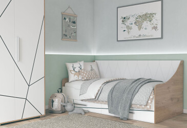 - 26 см, 90х200, без вклада, без матраса, Svit Mebliv, глянцевая ДСП, оббивка, ДСП, модерн, дуб артизан / нимфеа альба, шелкография, лак, выдвижной ящик, обычная, с бортиками.