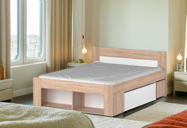 - 160х200, со вкладом, без матраса, VMV holding, ламинированная ДСП, ламинированная ДСП, модерн, дуб сонома / белый, выдвижной ящик, выдвижной ящик.