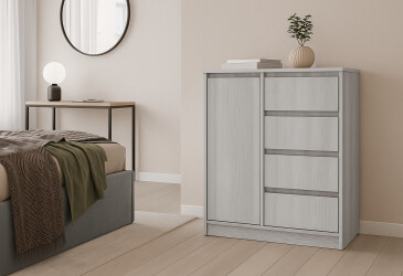 - деревянные, Perfect Home, ламинированная ДСП, ламинированная ДСП, телескопические направляющие полного выдвижения, сканди, эвкалипт / ель сканди, с 3 ящиками, с дверками.