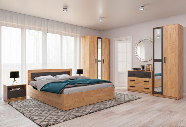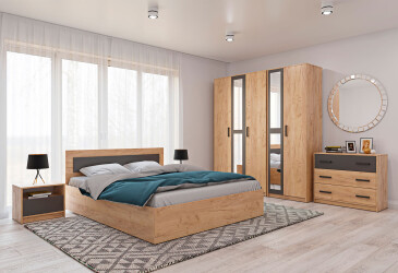 - 160х200, Garant, ламинированная ДСП, ламинированная ДСП, телескопические направляющие полного выдвижения, современный, дуб крафт золотой / антрацит, с трёхдверным шкафом, с пятидверным шкафом, с двухдверным шкафом.