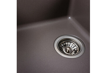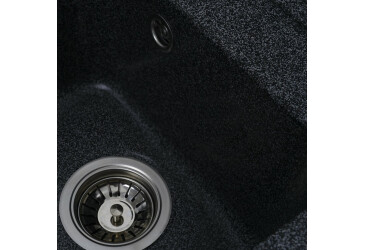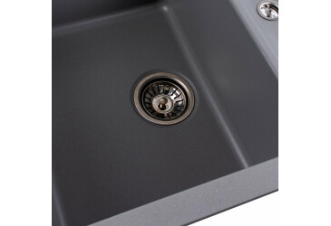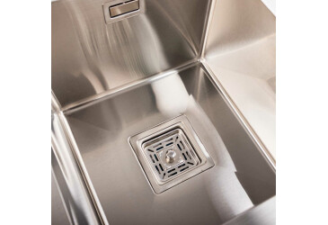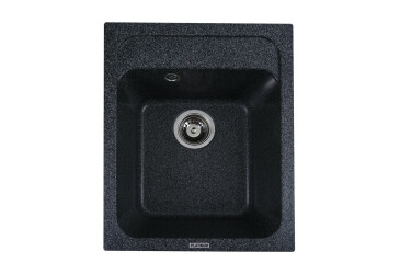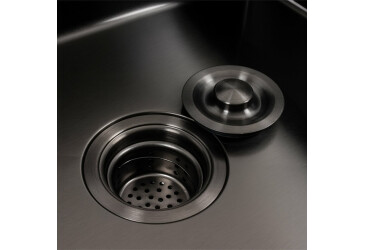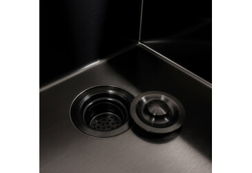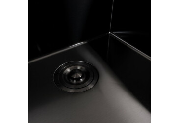 - центральна, підходить євросифон (широка горловина, 110 мм), Platinum, матовая, чёрный, квадратная, 220 мм, отвір під змішувач та дозатор, 1 чаша, врезная, нержавіюча сталь з PVD покриттям.