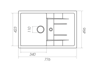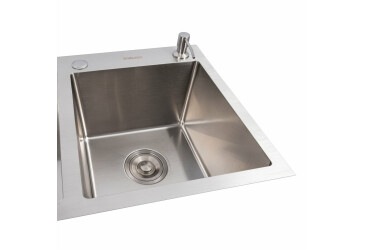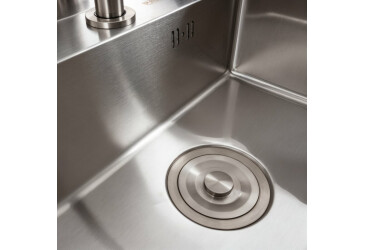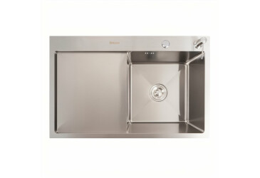 - чаша зліва, підходить євросифон (широка горловина, 110 мм), Platinum, глянцевая, прямоугольная, 220 мм, отвір під змішувач та дозатор, 1 чаша, врезная, нержавіюча сталь SUS 201.