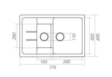- центральна, підходить євросифон (широка горловина, 110 мм), Platinum, матовая, прямоугольная, 220 мм, отвір під змішувач та дозатор, 2 чаши, врезная, нержавіюча сталь SUS 201.