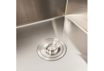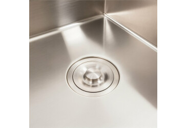 - універсальна, підходить євросифон (широка горловина, 110 мм), Platinum, матовая, прямоугольная, 230 мм, отвір під змішувач та дозатор, 1 чаша, врезная, нержавіюча сталь з PVD покриттям.