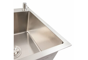 - чаша справа, підходить євросифон (широка горловина, 110 мм), Platinum, глянцевая, прямоугольная, 225 мм, отвір під змішувач та дозатор, 1 чаша, накладная, нержавіюча сталь SUS 201.