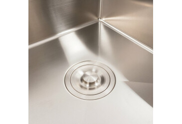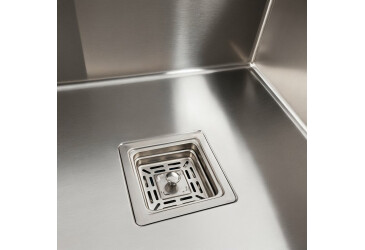 - центральна, підходить євросифон (широка горловина, 110 мм), Platinum, матовая, квадратная, 230 мм, отвір під змішувач та дозатор, 1 чаша, врезная, нержавіюча сталь SUS 201.