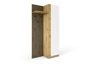 - Svit Mebliv, ламинированная ДСП, ДСП, телескопические направляющие полного выдвижения, современный, дуб белый / черный, со шкафом с распашными дверями.