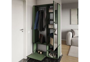 - пластиковые, не входит в комплект, Moreli, ламинированная ДСП, ламинированная ДСП, штанга и полки, лофт, зелёный дымчастый, со шкафом с распашными дверями.