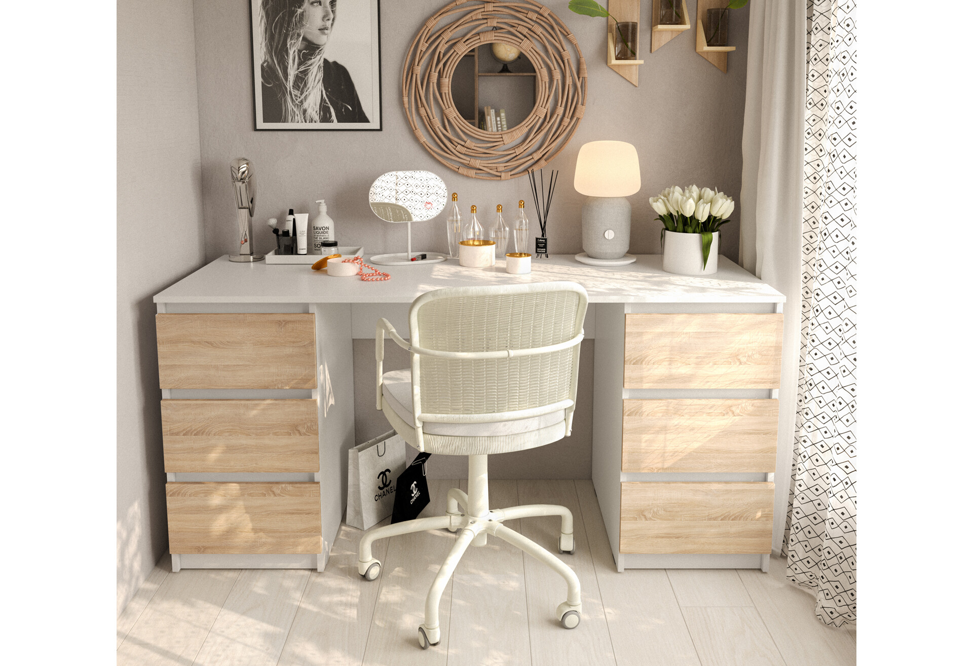 Стол письменный Moreli Т228 158x60 см с ящиками, белый / дуб сонома