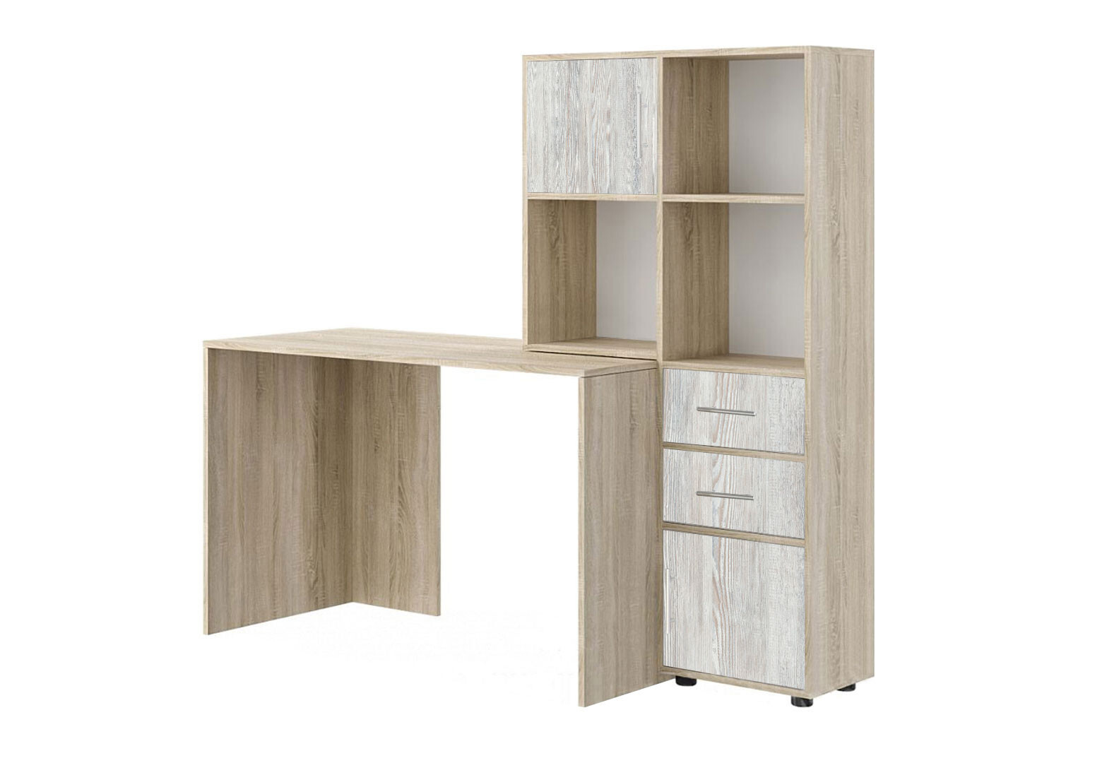 Стол компьютерный Киевский стандарт КС-05 160x60 см с надставкой и стеллажом дуб сонома / сосна натти, сборка правая