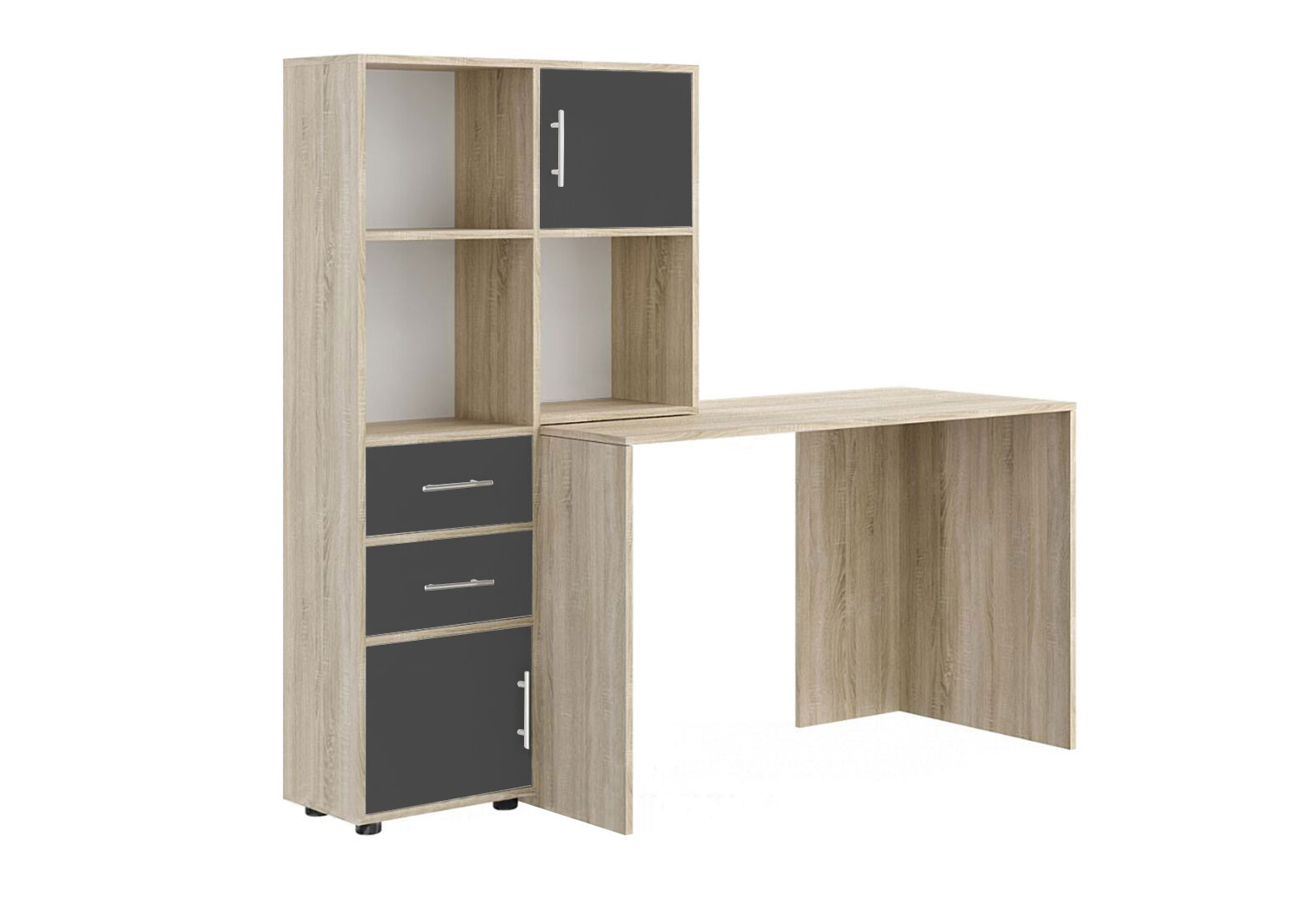 Стол компьютерный Киевский стандарт КС-05 160x60 см с надставкой и стеллажом дуб сонома / антрацит, сборка левая