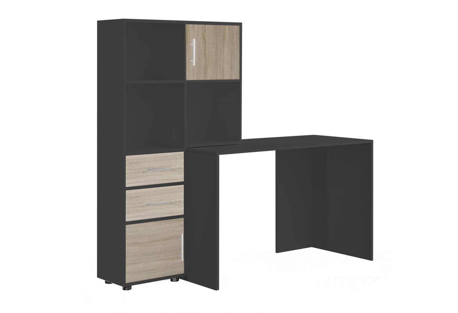 Стол компьютерный Киевский стандарт КС-05 160x60 см с надставкой и стеллажом антрацит / дуб сонома, сборка левая