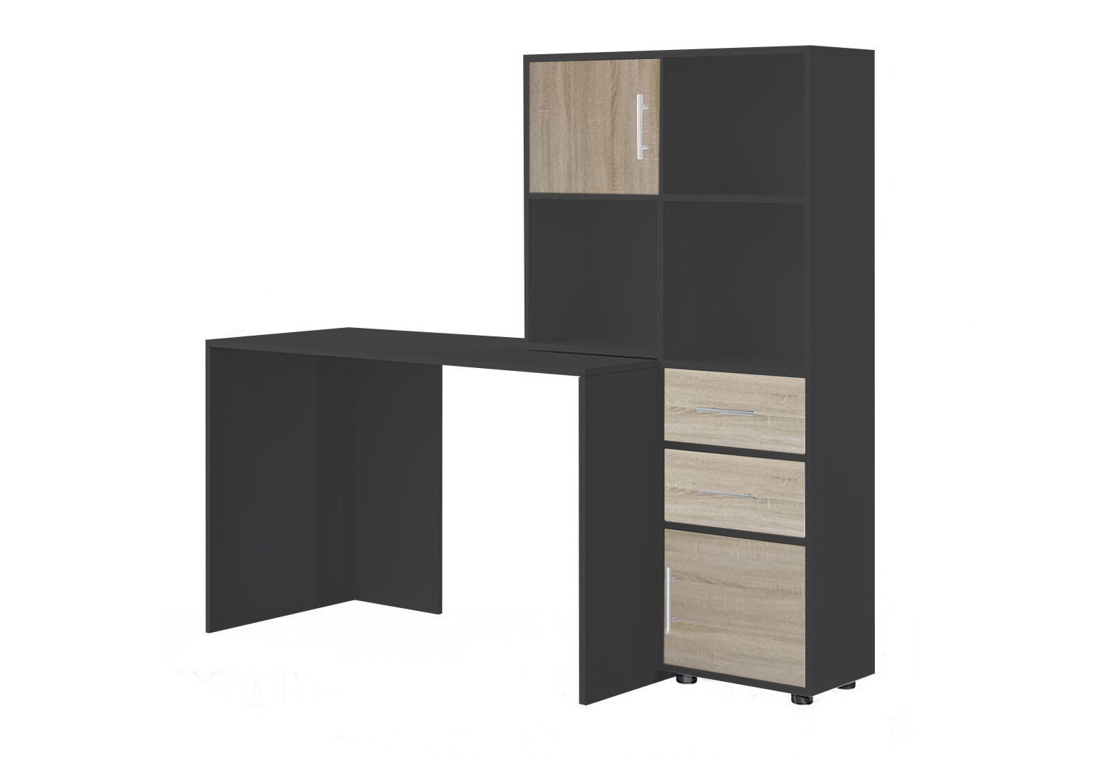 Стол компьютерный Киевский стандарт КС-05 160x60 см с надставкой и стеллажом антрацит / дуб сонома, сборка правая