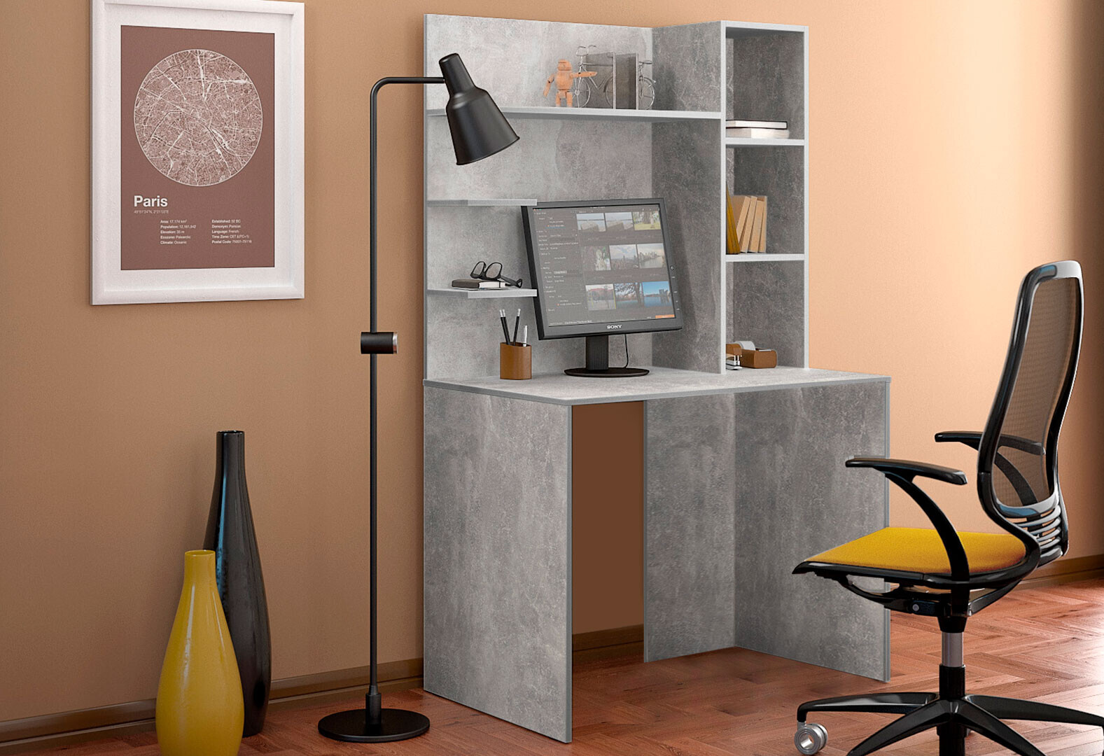 Стол компьютерный Киевский стандарт КС-03 100x60 см с надставкой бетон збірка правая