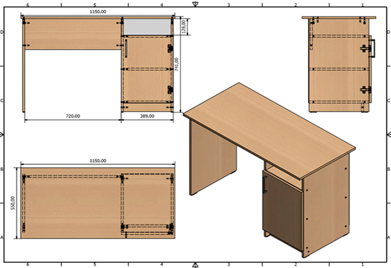 Стол письменный Креденс Фениче СК-1 115x55 см с тумбой аляска серая